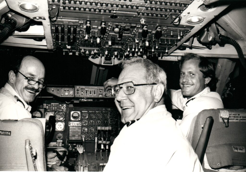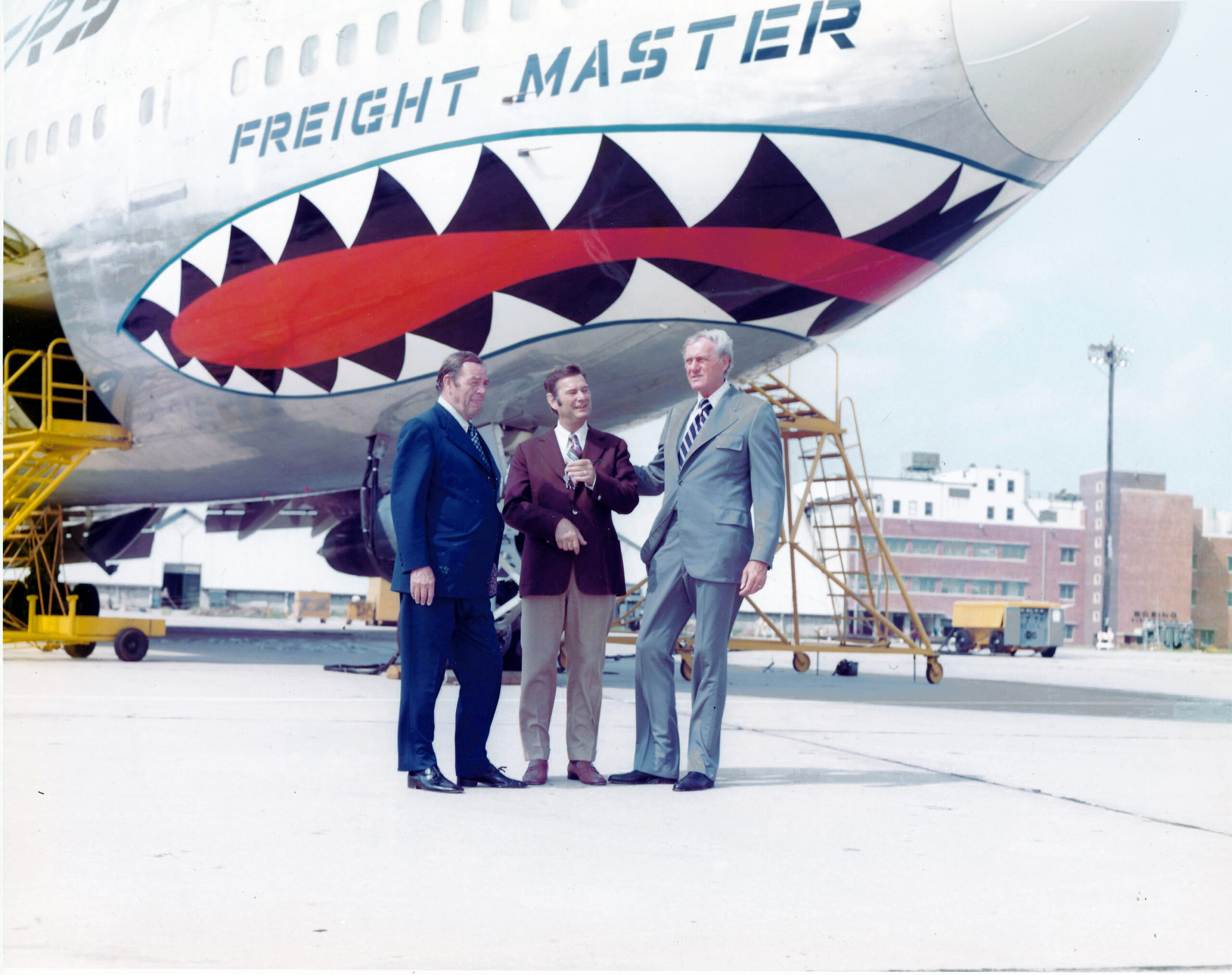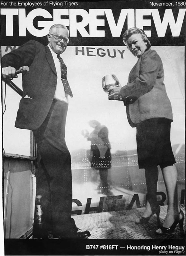 On Oct. 17, 1980, shortly after the formal merger with Flying Tigers, a new Boeing 747F was dedicated the “Henry L. Heguy”. The aircraft was originally ordered by Seaboard and would have been registered as N706SW. Henry Heguy was one of Seaboard’s first employees, the navigator on Seaboard’s first flight in May, 1947 on Seaboard’s first passenger flight in Sept. 1947. He later went into management and served eight years in Luxembourg as Seaboard’s European manager.