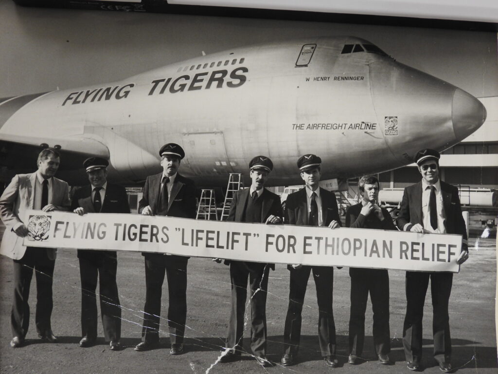 Originally published in the March 1985 TigeReview Employees contribute time $20,000 to help the starving and Ethiopia On January 29, 1985, a Flying Tigers B-747 jetfreighter loaded with some 234,700