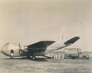 Following the collapse of Azteca, the original plan was to acquire the remaining Budds and resell them for profit, but Mosher hesitated. He showed greater interest in Prescott’s proposal to utilize them for launching a cargo airline. When it became known that the entire production line of Budds would be sold off, Prescott’s brother suggested that the returning Flying Tigers should purchase the remaining aircraft themselves and establish their own airline. Ten members of the group pooled their resources, with Mosher’s investors contributing half of the funds and Prescott’s Flying Tiger associates providing the other half at $10,000 each. According to investor and pilot Robert ‘Catfish’ Raine, “It was this insider knowledge that made the airline possible.” With this arrangement, the National Skyway Freight Corporation was founded on June 25, 1945, at Long Beach Municipal Airport, operating out of a modest two-car garage. Prescott served as president, with Mosher assuming the role of chairman. Immediately, four of the Budds were sold to the Asiatic Petroleum Co., allowing for the recovery of 58% of the total purchase price. The remaining seven aircraft became the first fleet for the new airline, which branded itself as ‘The Flying Tiger Line’.